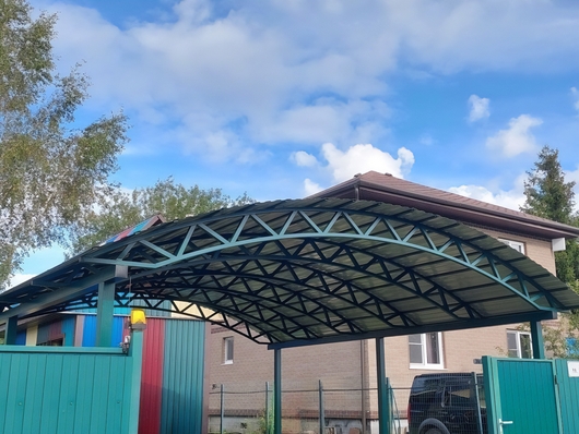 Арочный навес для авто из профнастила голубого цвета Арт-694