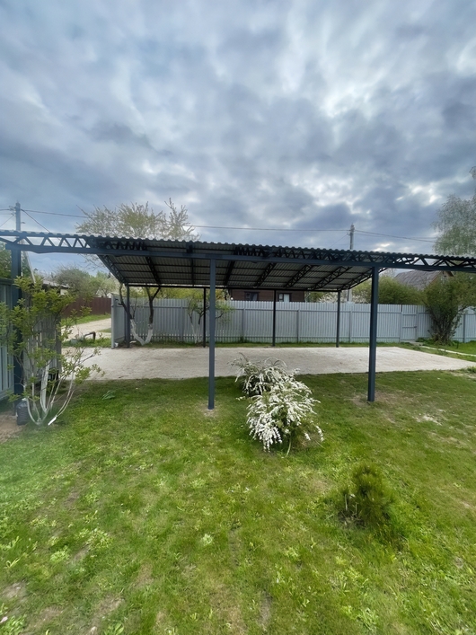 Двускатный навес из профнастила для зоны стоянки автомобиля Арт-700